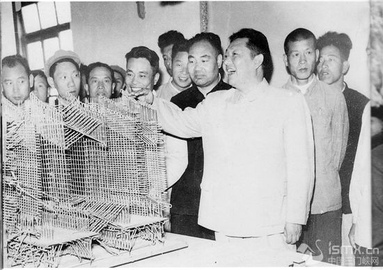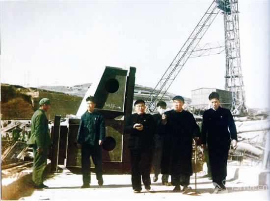 ![]() 1958年4月,周恩來視察黃河三門峽水利樞紐工程時與工人親切握手。 ![]() 1960年4月,劉少奇(右二)實地指導(dǎo)三門峽大壩建設(shè)。