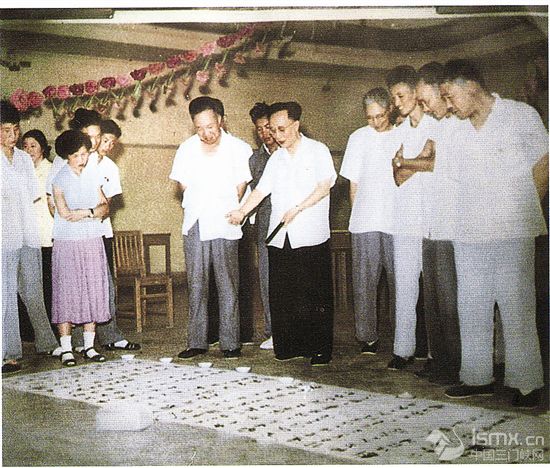 1959年7月5日,時任全國人民代表大會常務委員會副委員長的郭沫若到三門峽視察三門峽水利樞紐工程建設,從三門峽大壩回到賓館后,文化部門的領(lǐng)導及隨行人員想請他題詞,但又考慮他一路辛苦勞累,不便開口。省里陪同的同志得知此情后,就向郭沫若請示,他不顧疲勞,慨然應諾。文化館的同志提早在郭沫若下榻的賓館餐廳里準備好了筆墨紙硯,郭沫若健步走進餐廳,提起毛筆略加思索,就奮筆疾書。只見他筆飛墨舞,得心應手,筆法雄健瀟灑、字跡蒼勁優(yōu)美,不一會兒工夫,“詩八章”一氣呵成(原詩真跡附后)。