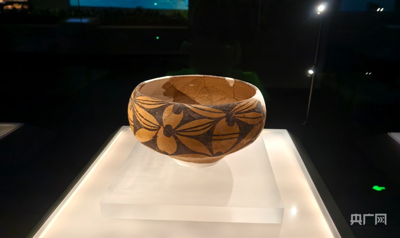 大河村遺址博物館新館里的文創(chuàng)產(chǎn)品(央廣網(wǎng)記者 郝振青 攝) 據(jù)了解,該博物館還通過三維交互、裸眼3D、場景塑形、Mapping投影等科技手段打破時空壁壘,全方位勾勒出距今7000-5000多年前的絢爛文明圖景,讓史前文明可觸摸、可參與、可感知。 “華夏之花”于文明中綻放 仰韶文化是黃河中下游地區(qū)重要的新石器時代文化,以發(fā)達(dá)的制陶工藝為人熟知。仰韶文化中期,彩陶技藝得到較大發(fā)展。廟底溝先民用流暢的線條和出露的筆鋒,讓花朵在件件彩陶上肆意綻放,成為散播廟底溝文化的載體。 三門峽廟底溝遺址,發(fā)現(xiàn)于1953年,是“仰韶文化廟底溝類型”的發(fā)源地,因其重要的考古發(fā)現(xiàn),被譽(yù)為新石器時代考古領(lǐng)域的里程碑。 走進(jìn)廟底溝博物館,大廳藝術(shù)穹頂?shù)溺U空花飾引起了記者的好奇。“穹頂?shù)募y飾,來源于廟底溝時期的代表性紋飾——花瓣紋。”講解員楊美婧介紹說,花瓣紋飾是廟底溝時期最具代表性的紋飾。在古漢語里,“花”與“華”同音同義同源,有學(xué)者認(rèn)為彩陶上的花瓣紋很有可能就是華夏之“華”的由來。